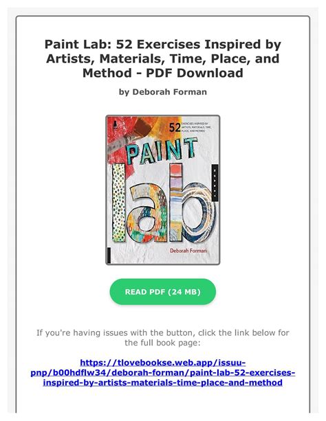 Read Online Paint Lab 52 Exercises inspired by Artists Kindle Editon By Click Button. Paint Lab 52 Exercises inspired by Artists it’s easy to recommend a new book category such as Novel, journal, comic, magazin, ect. You see it and you just know that the designer is also an author and understands the challenges involved with having a good book. You can easy klick for detailing book and you can read it online, even you can download it